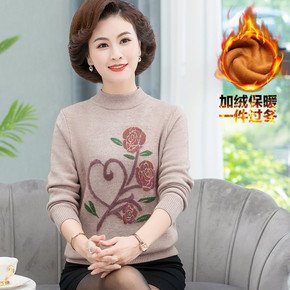 中年妈妈冬季加绒针织衫毛衣中老年妇女装秋冬装加厚保...
