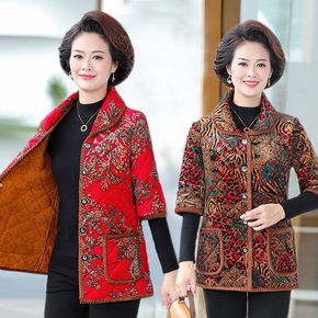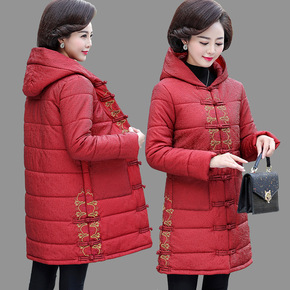 羽绒服女2021年新款妈妈冬装洋气复古盘口唐装中老...