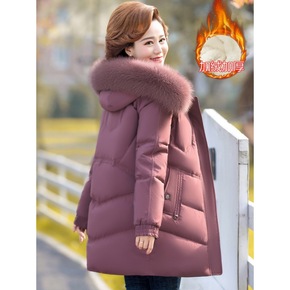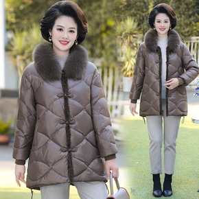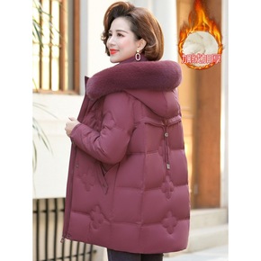跨境妈妈冬装外套2021新款中老年女羽绒棉服加绒加...