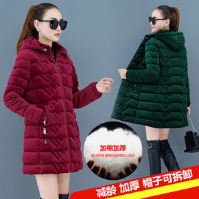 妈妈冬装韩版时尚棉衣2021冬季新款加绒加厚连帽中...