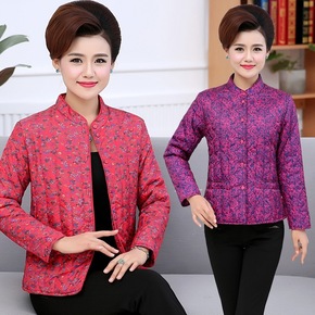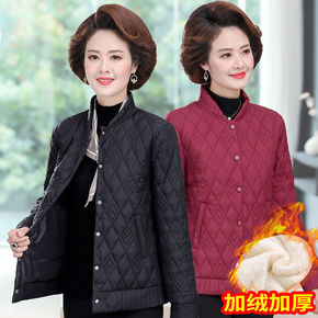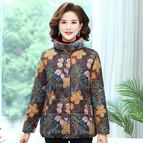跨境中年妈妈棉衣短款洋气保暖棉袄加绒中老年冬装外套...