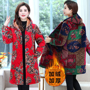 妈妈冬装中长款棉服中老年女装加绒加厚棉衣奶奶装灯芯...