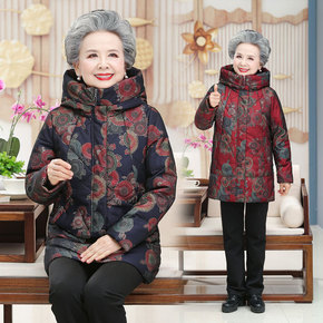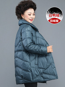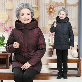 新款中老年人羽绒服女中长款宽松外套加厚白鸭绒大码妈...