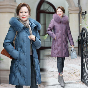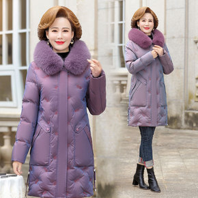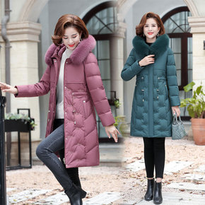 妈妈冬季羽绒服中长款时尚拼接中老年大码洋气白鸭绒外...