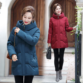 中年妈妈装连帽棉服女2021年新款冬季显瘦加绒加厚...