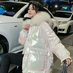 炫彩亮面棉衣女免洗2021冬季新款时尚洋气面包羽绒...