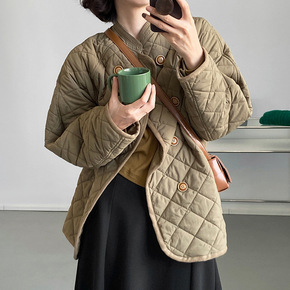 菱形格羽绒棉服女2021年冬新款设计感小众棒球外套...