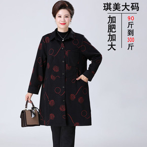 200斤妈妈春秋装风衣新款中年女洋气中年中长款翻领...