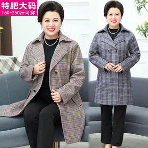 200斤胖妈妈装春秋薄大码宽松老年中长风衣翻领格子...