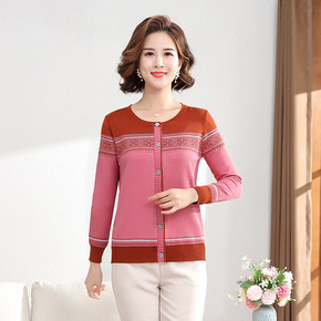 中年妈妈秋装外套女短款2020新款中老年早秋针织小...