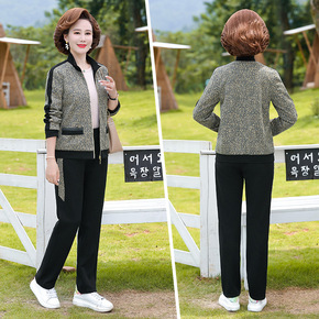 中年妈妈装秋装针织两件套上衣45-55岁中老年女装...