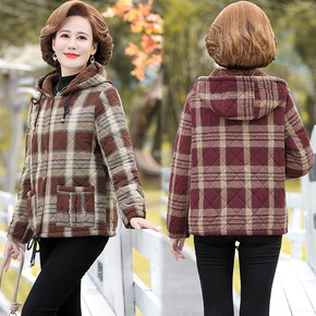 奶奶秋冬装短款毛呢外套翻领时尚宽松中老年60岁70...