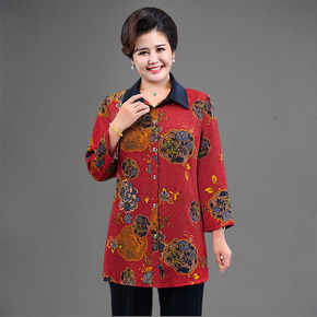 097款时尚女装长款中老年彩色春秋装太太上衣加厚秋...