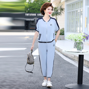妈妈夏装运动套装洋减龄中老年女春秋两件套显瘦阔太太...