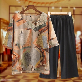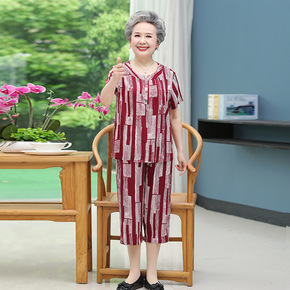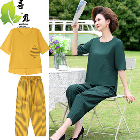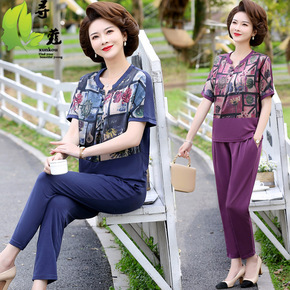 中老年女装胖妈妈加肥加大码女士夏装新款套装妈妈装两...