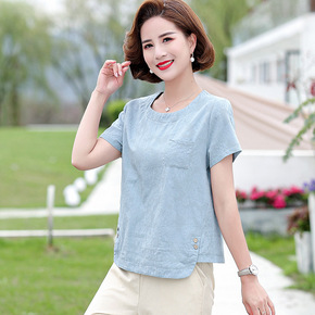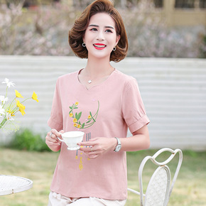 胖妈妈夏装短袖上衣中老年人女装棉绸T恤宽松大码奶奶...