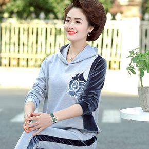 2022中老年妈妈装春季新款连帽时尚两件套40岁5...