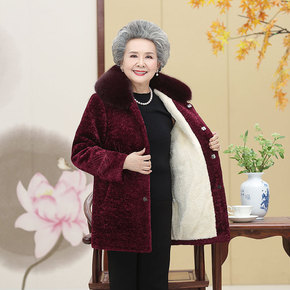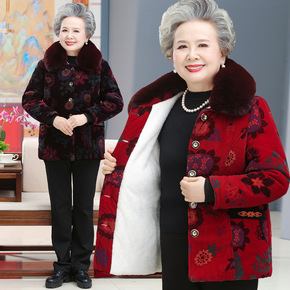 老太太棉衣加绒加厚毛领棉袄中老年女装奶奶保暖外套码...