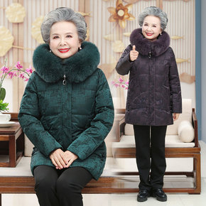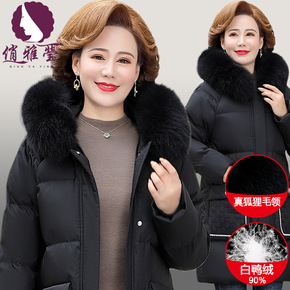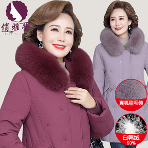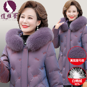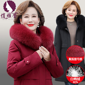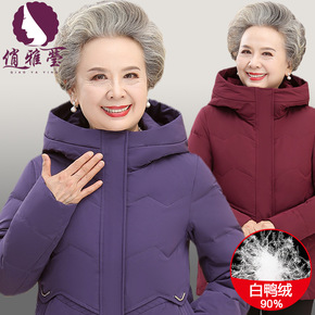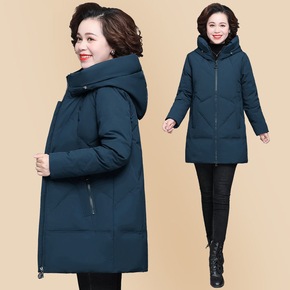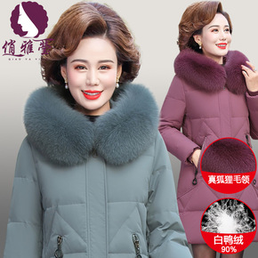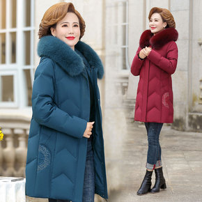21妈妈羽绒服女中长款冬装中老年白鸭绒洋气时尚显瘦...