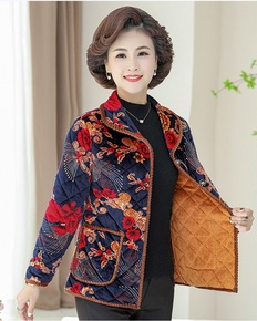 中年妈妈冬装外套棉服女短款小碎花棉袄老年人奶奶女棉...