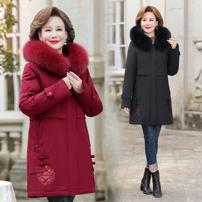 妈妈冬装羽绒服女士中长款中年洋气复古保暖派克服中老...