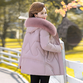 中年妈妈冬装羽绒服中长款2021新款女装派克服复古...