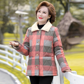 妈妈冬装棉衣外套四五十岁中老年人女装格子棉服女士加...