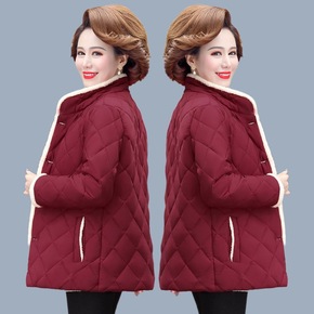 妈妈秋冬外套女2021新款中老年保暖羽绒棉衣棉服中...
