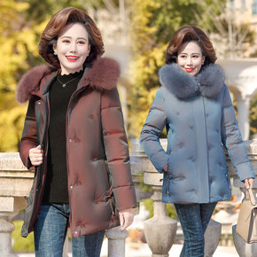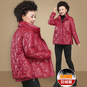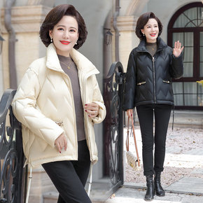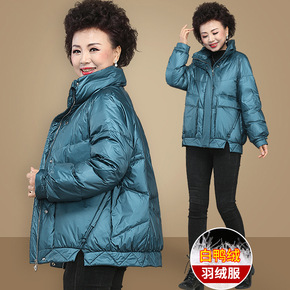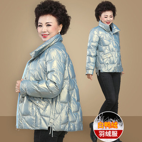 中老年羽绒服短款女2021新款亮面中年妈妈白鸭绒保...
