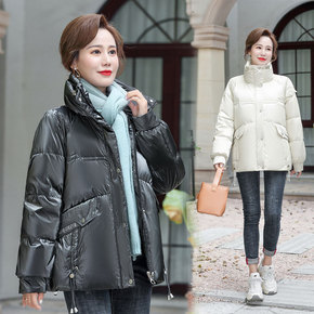 年轻妈妈短款羽绒服洋气大码中老年亮面白鸭绒外套女2...