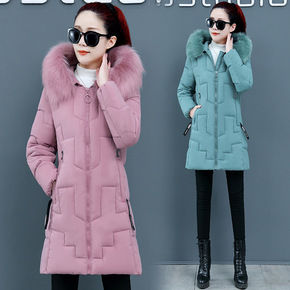 冬季新款妈妈装羽绒棉服外套中长款大毛领中老年女装棉...