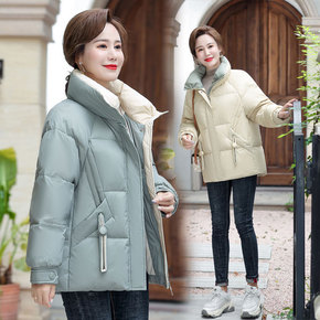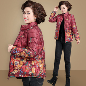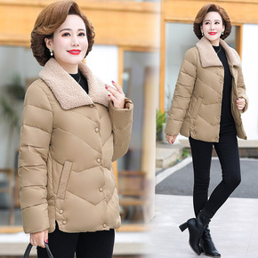 妈妈冬装羽绒服短款2021中年宽松轻薄洋气棉衣中老...
