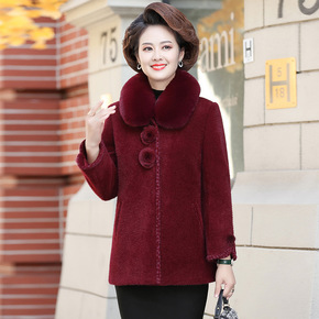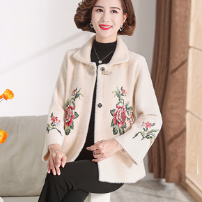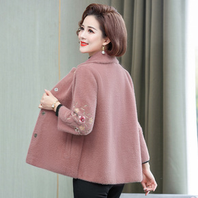 妈妈秋冬装水貂绒洋气外套中年女装呢子大衣中老年短款...