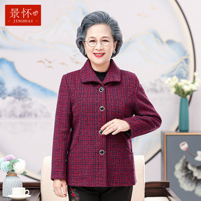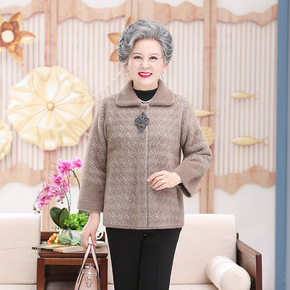 奶奶春装毛呢外套女70岁80妈妈衣服老太太中老年人...