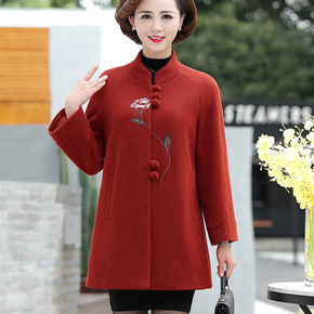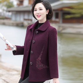中老年人女秋冬羊毛呢外套新款妈妈装加棉加厚高贵呢子...