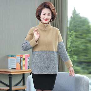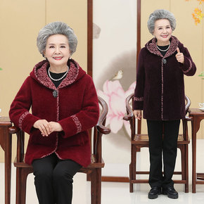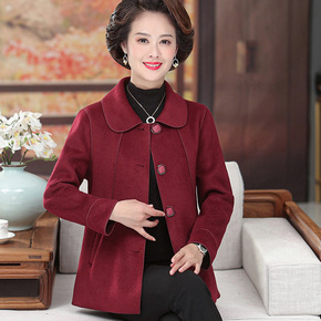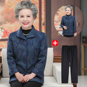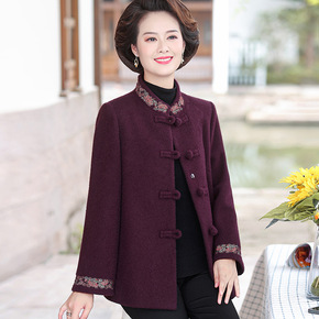 奶奶装冬装毛呢外套中老年新款上衣女妈妈装套装70老...