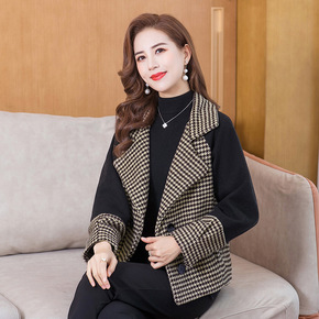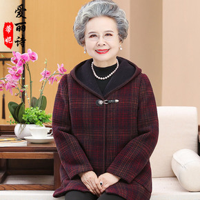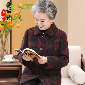 老年人秋冬装奶奶格子上衣长袖中老年妈妈毛呢外套女装...