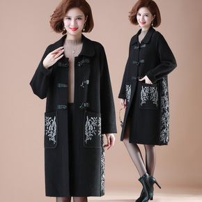 双面羊绒大衣女2021秋冬长款宽松过膝中年妈妈装纯...