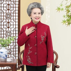 老人衣服女奶奶春秋装绣花毛呢外套上衣60岁中老年人...