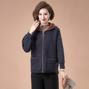妈妈秋装洋气外套中年妇女装连帽上衣中老年秋冬202...