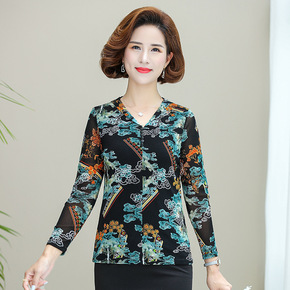 中老年妈妈装秋季新款长袖休闲上衣大码宽松舒适高贵洋...