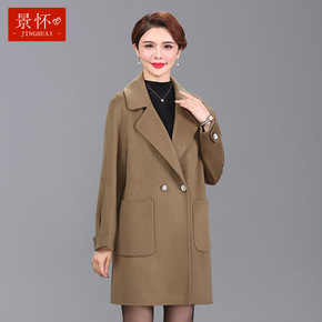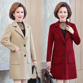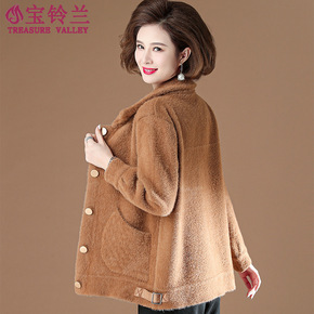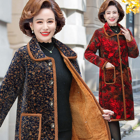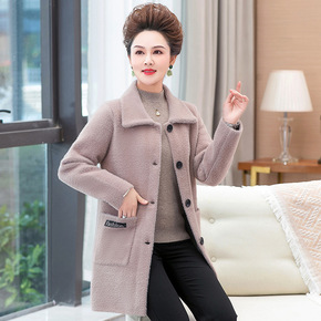 中老年女秋冬中长款大衣妈妈冬装水貂绒外套洋气双面绒...
