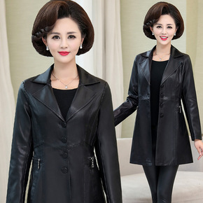 皮风衣中长款秋冬韩版修身妈妈装PU皮加棉大衣冬季女...