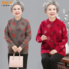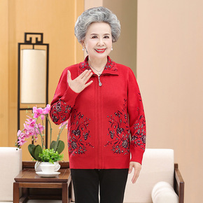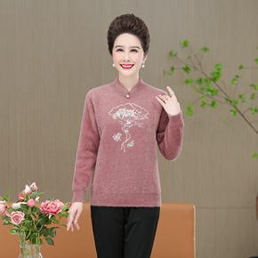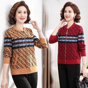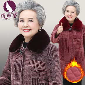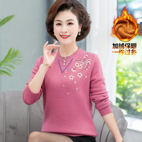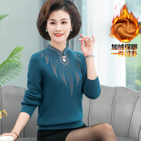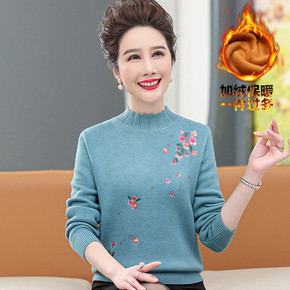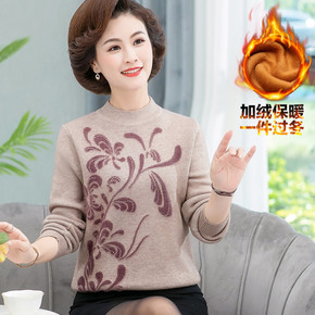 中老年秋冬装妈妈加绒毛衣女针织衫老年人保暖毛线衣奶...
