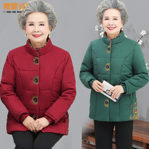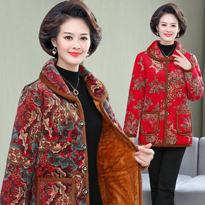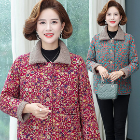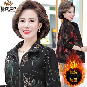秋冬天妈妈装加绒加厚短款夹克衫上衣中老年人女装保暖...