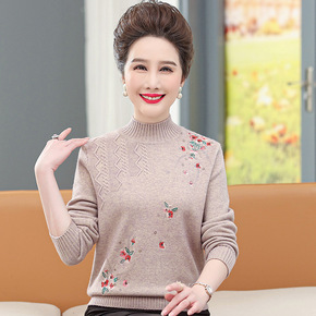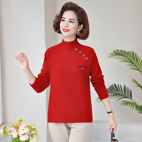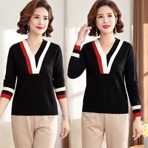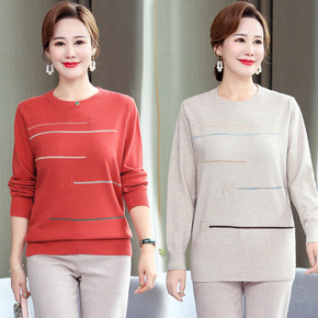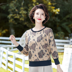 秋季新款七分袖休闲中年妈妈装女士针织上衣圆领宽松舒...