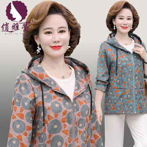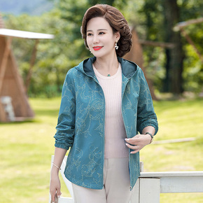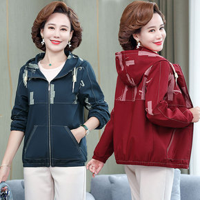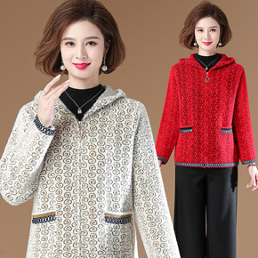 妈妈洋气短款外套连帽中老年女秋冬装宽松新款阔太太仿...