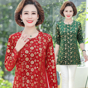 妈妈装秋季新款中老年女士七分袖休闲上衣40岁50高...