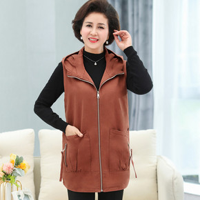 中老年春秋大码马甲女纯色休闲妈妈装坎肩宽松中长款马...