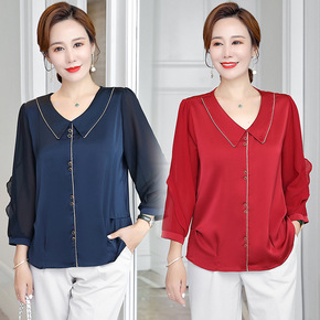 高端气质休闲时尚中年妈妈装秋季新款长袖上衣40岁5...